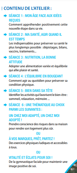 Ces Ateliers sont accueillis par les communes ou les structures locales. Pour les retraités de + de 60 ans.